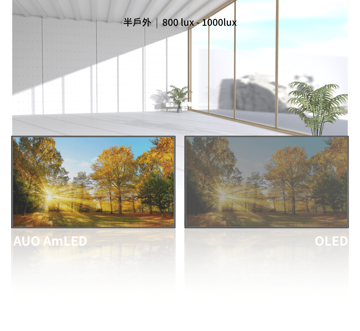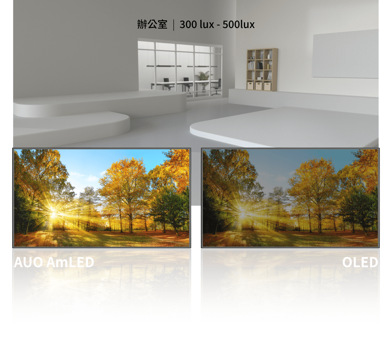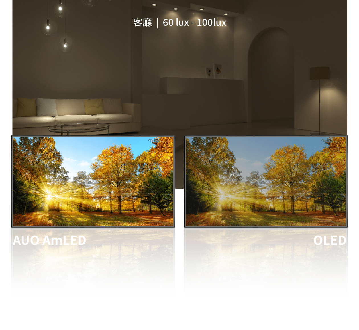 除 DCI-P3 100% 廣色域,AmLED 在顯著