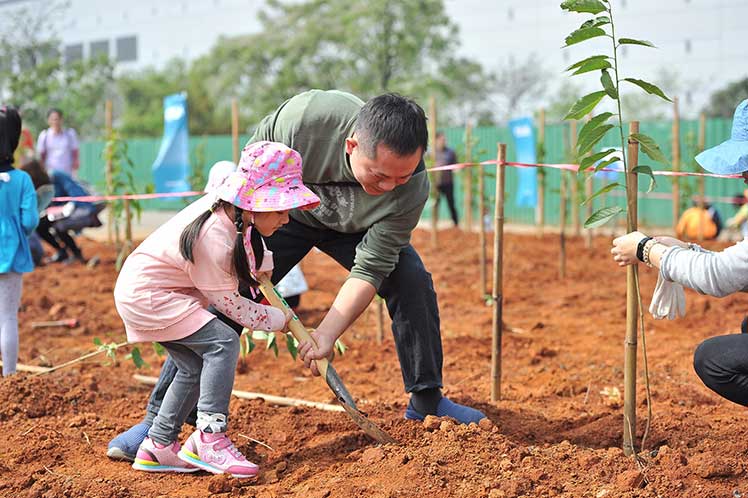 350vip8888新葡的京員工帶著家中孩童一起植栽樹苗,親身響應愛護土地