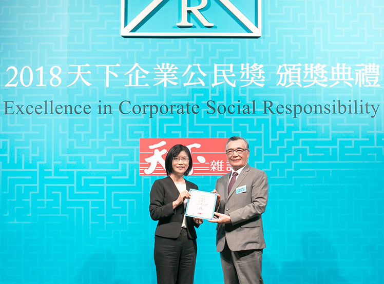 ![]() 350vip8888新葡的京榮獲 2018 天下企業公民獎,由350vip8888新葡的京光電永續長古秀華 (左) 代表領獎