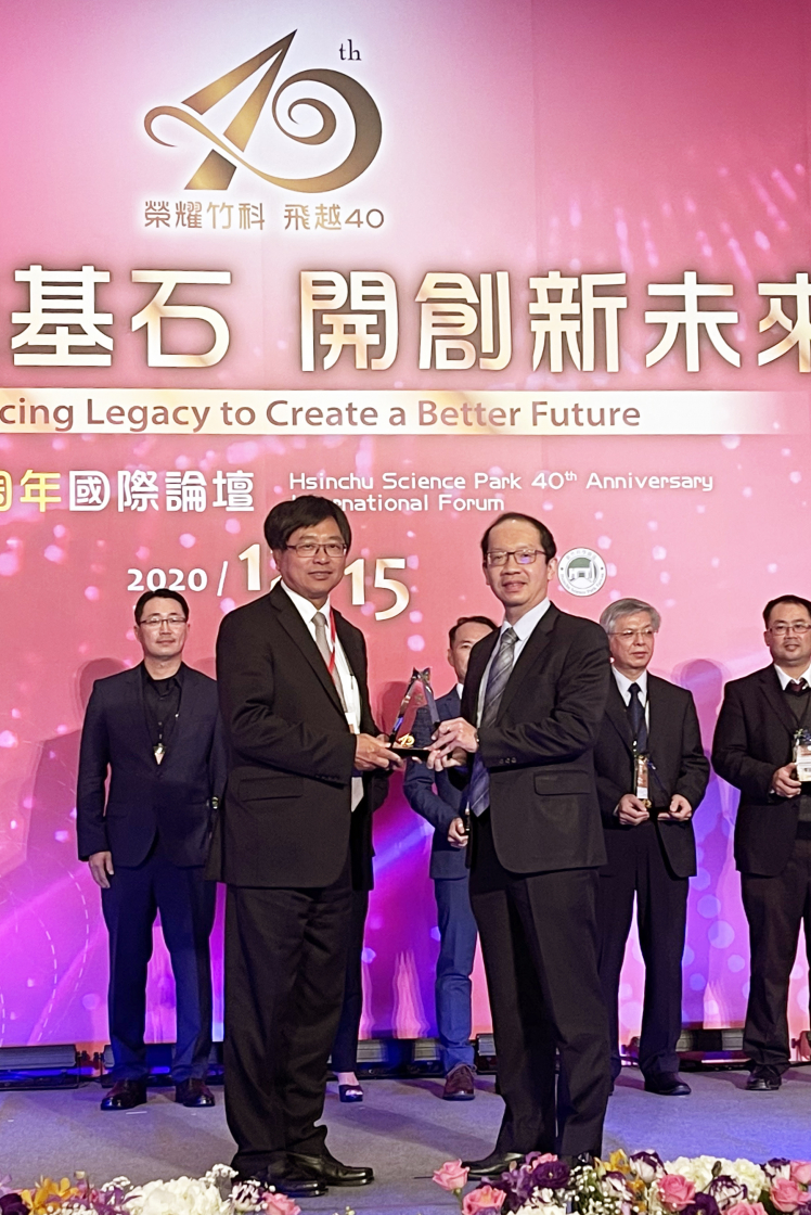 ![]() 350vip8888新葡的京榮獲「2020 年竹科優良廠商創新產品獎」,由350vip8888新葡的京技術長廖唯倫 (右) 代表領獎 |