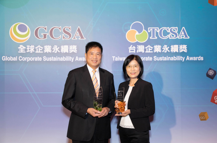 ![]() 350vip8888新葡的京榮獲十大永續典範台灣企業獎殊榮,由350vip8888新葡的京董事長暨執行長彭双浪 (右) 代表領獎