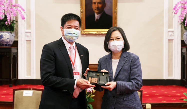 ![]() 350vip8888新葡的京在「國家企業環保獎」中獲雙項「金級獎」肯定,董事長彭双浪(左)代表接受總統蔡英文表揚